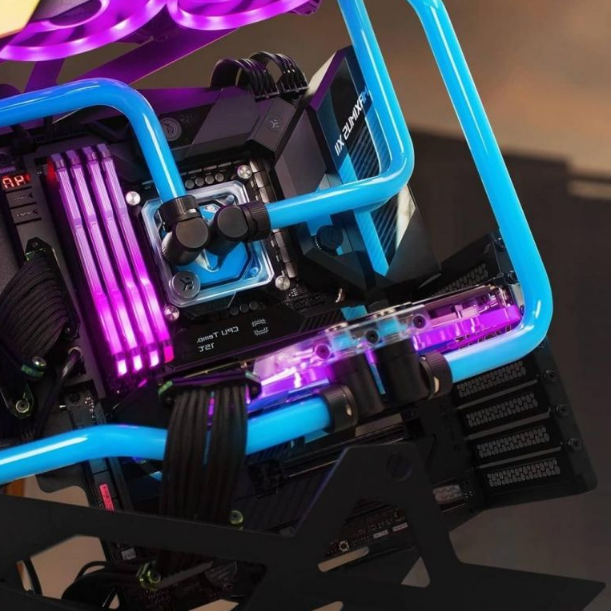 - Охлаждение: авторский комплект водяного охлаждения EKWB + вентиляторы Corsair QL120 RGB LED