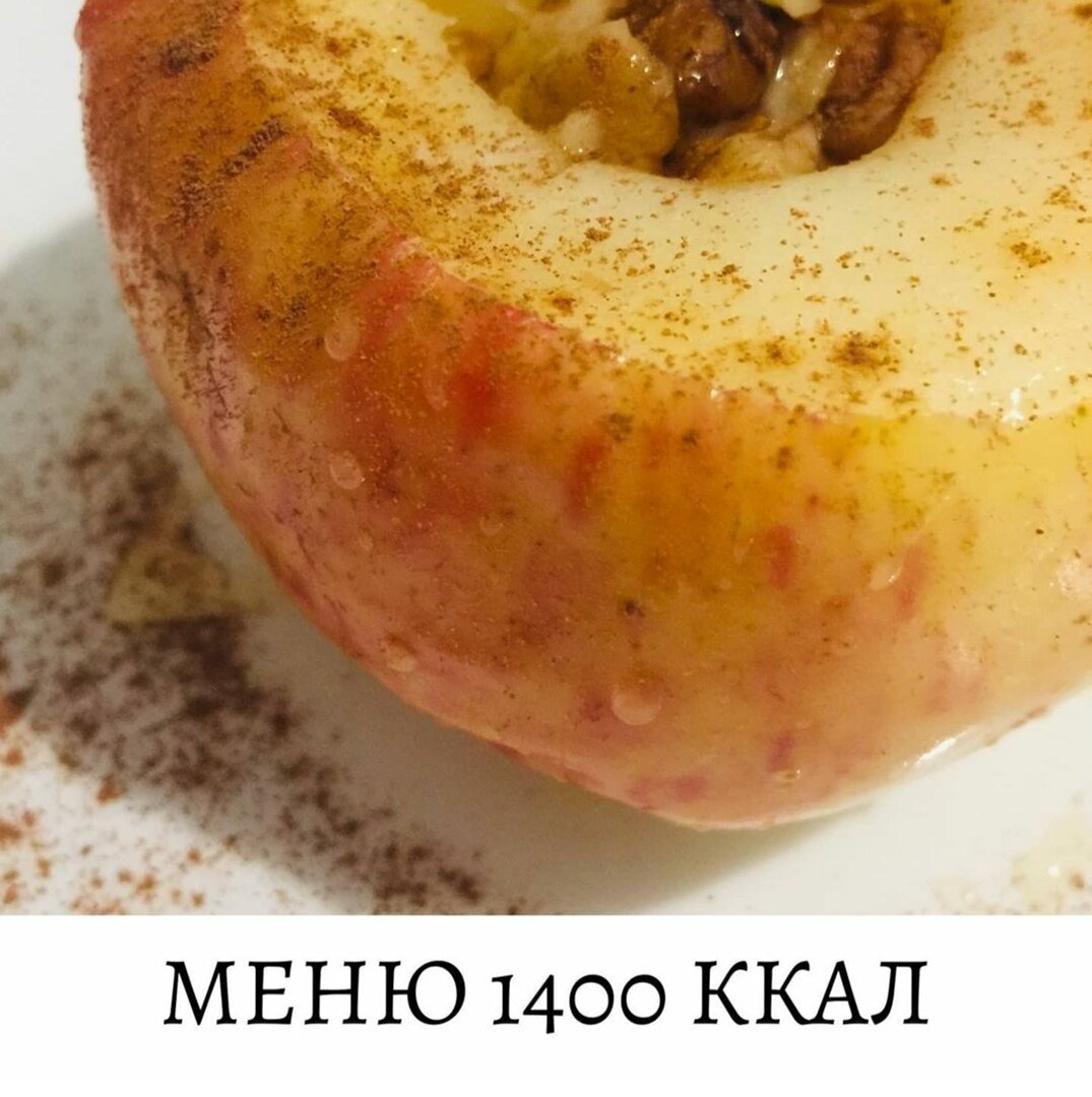 У яблока удаляем сердцевину и ставим на 2 минуты в микроволновку. Кладём в яблоко 15 гр грецких орехов и мёд 6 гр