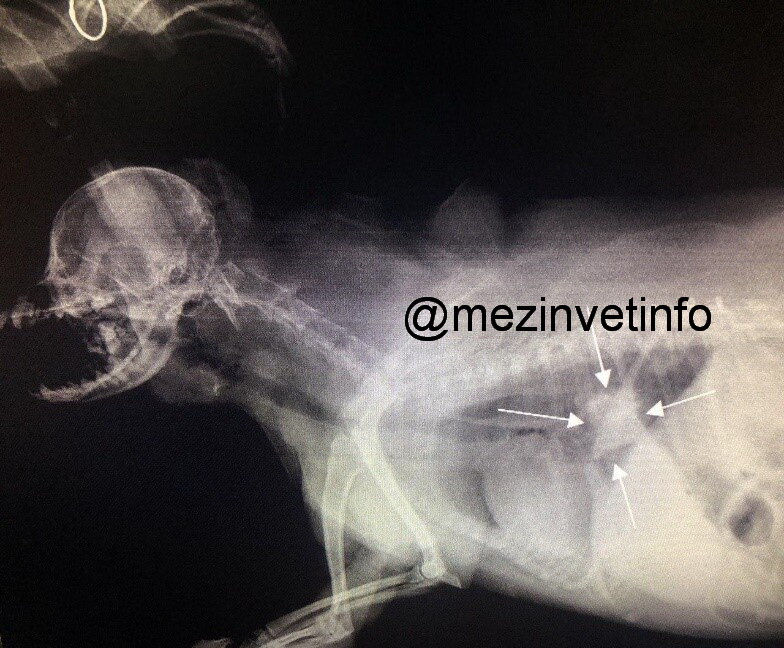 Пищевод проходит через грудную полость, и если вовремя не обратиться за помощью к специалисту, то на 3-и сутки компрессии инородным предметом на стенку пищевода развивается некроз слизистого слоя (средней степени). На 5-7 сутки перфорация(отверстие) в грудную полость, что почти в 90% случаев приведет к гибели животного.