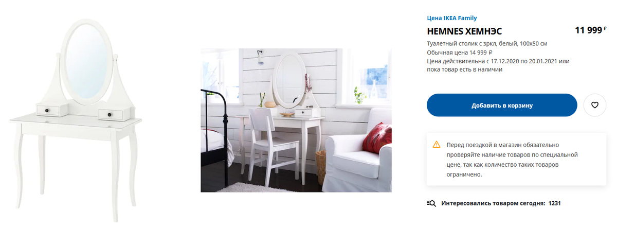 Аналог туалетному столику Хемнэс можно найти в каталоге магазина Хофф. Да, столик Марсель не такой изящный, зато в нем целых 6 ящичков для хранения, тогда как у Хемнэса всего 2.