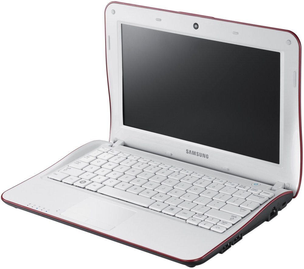 Кроме того, к основным особенностям нетбука Samsung NF110-A01 можно отнести встроенную современную акустику, а также вебкамеру, имеющую разрешение 0, 3 Мп, стандартное для нетбуков такого уровня. Впрочем, как показывает практика, для большинства пользователей такого расширения вполне достаточно, тем более, что звуковые динамики соответствуют SRS Premium Sound стандарту. Это обеспечивает высокое качество звука и значительный запас громкости, к тому же решетки динамиков расположены очень удобно – сразу же над клавиатурой. Единственным незначительным недостатком можно назвать, пожалуй, недостаточную различимость низких частот. Дисплей нетбука яркий, снабжен приятным для глаз матовым покрытием. Правда, оставляют желать лучшего углы обзора по вертикали, но такая же проблема существует у большинства нетбуков этого класса. Разъемы здесь представлены тремя портами USB, каждый из которых поддерживает исключительно вторую версию интерфейса. Что касается цифрового интерфейса, то его в данной модели нетбука просто нет, поскольку технологические характеристики модели не оставляют такой необходимости.