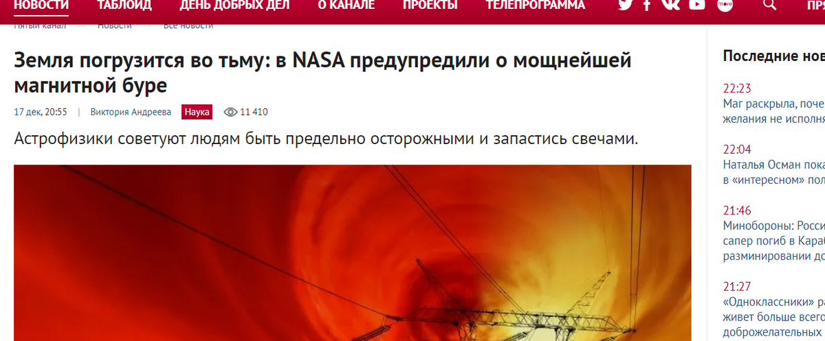 Это слова из интервью действительно ученого "Звезде", но это не помешало появлению в заголовке слов "сильнейшая за последние 300 лет магнитная буря".