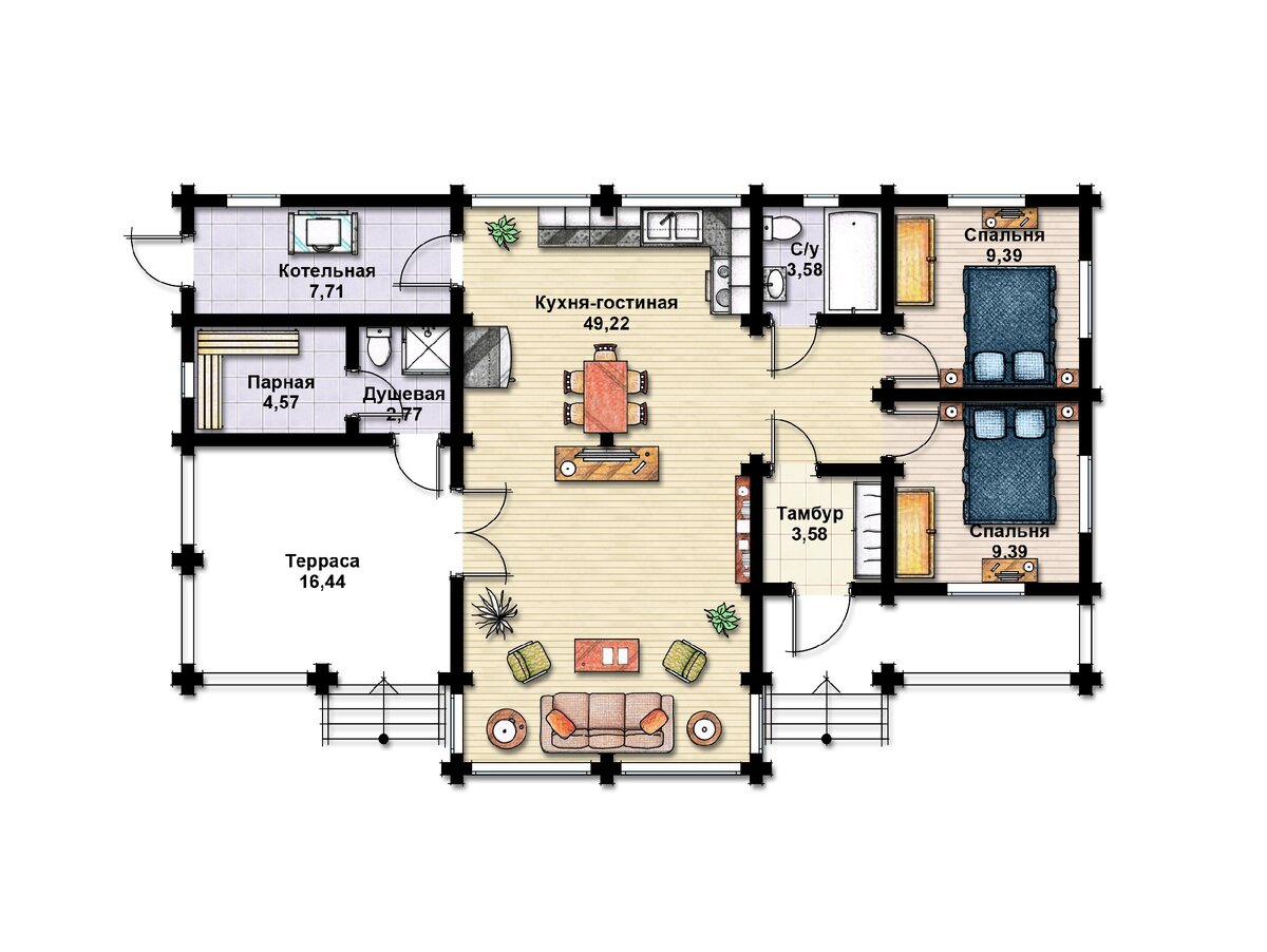 В данной статье мы расскажем вам о проекте дома-бани "Alta". Наш клиент пожелал что бы дом сочетал в себе баню и несколько спален для гостей. Используется данный проект сейчас у нашего клиента как гостевой-дом-баня из клееного бруса.