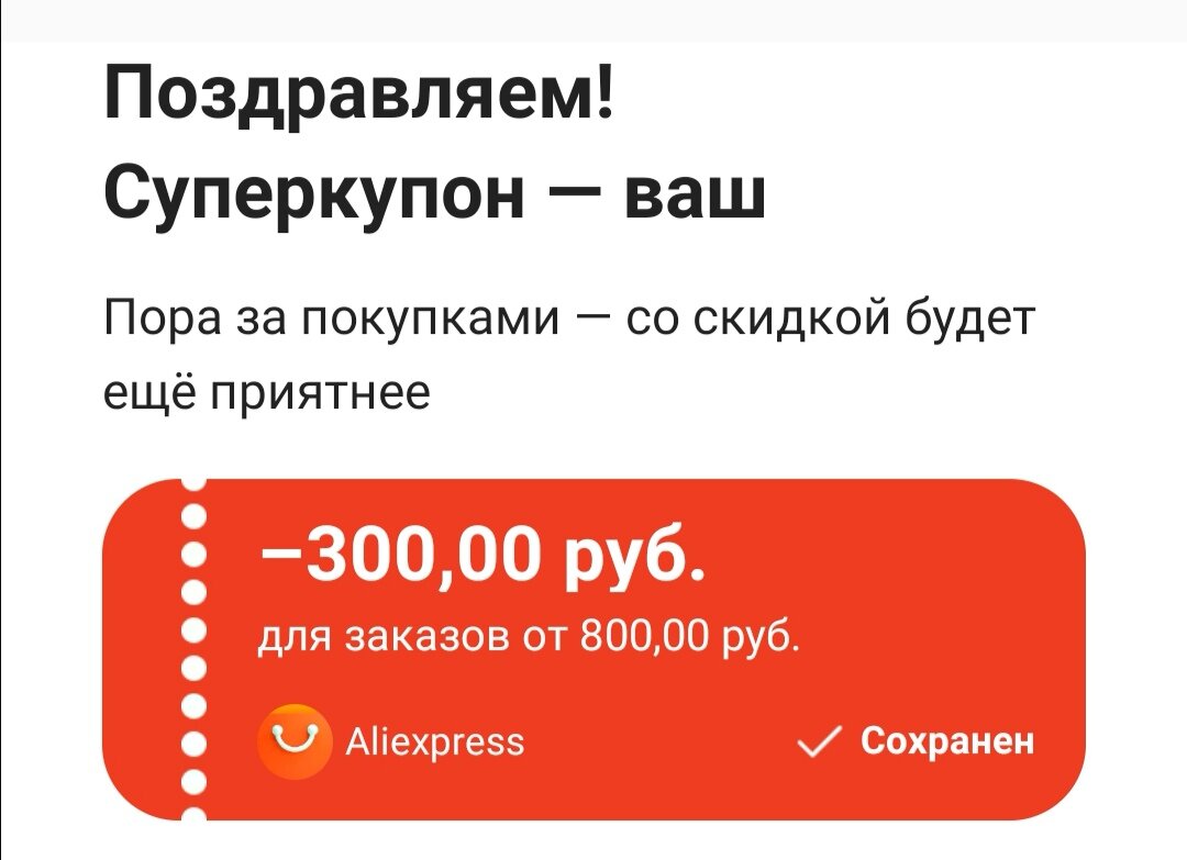 Вы уже смогли получить 🎟 купон 300₽ от 800₽ в мобильном приложении AliExpress?