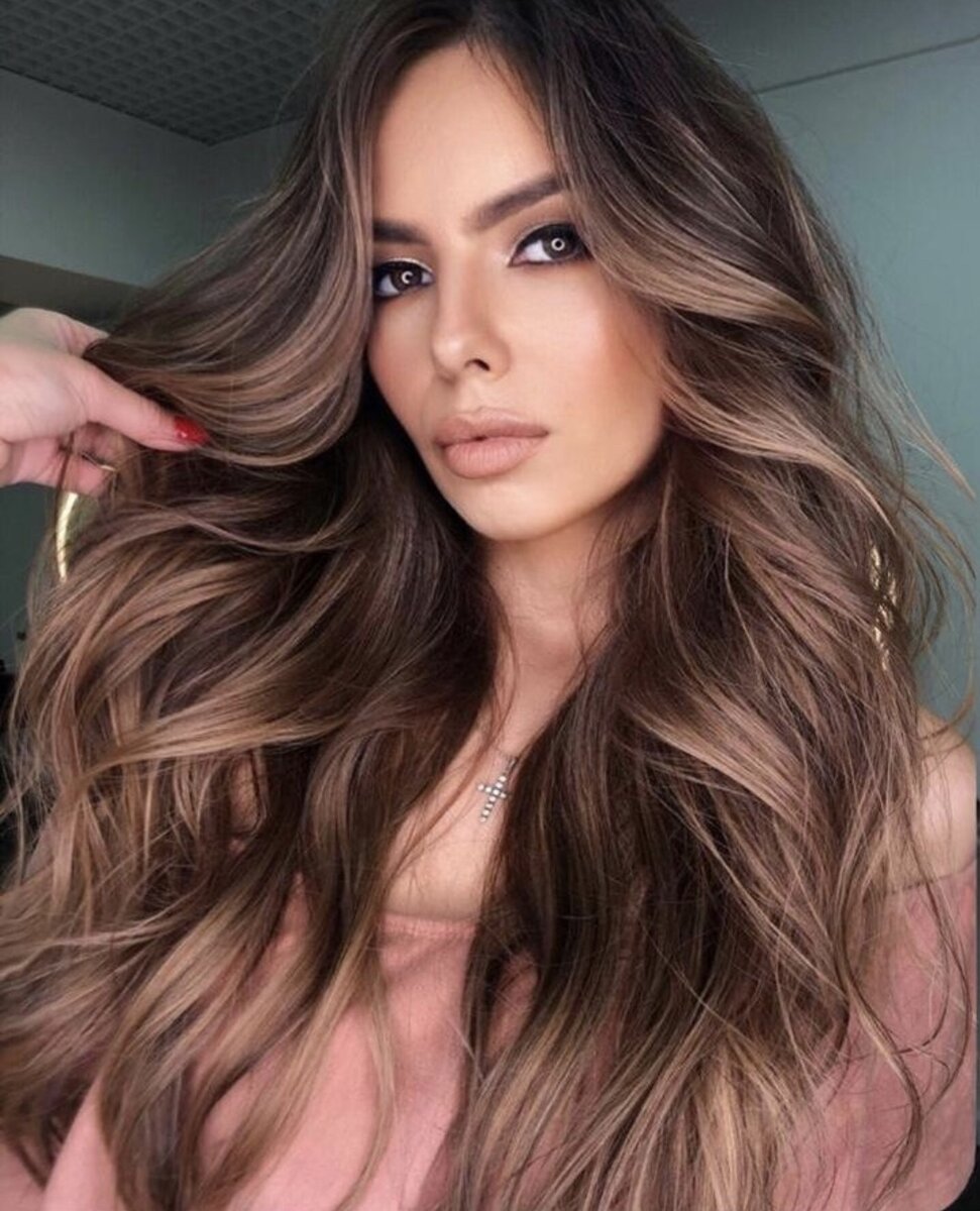 - Если тебе нравится темный шоколад, но хочется глубины, то добавь пару хайлайтов. Мы на улицу особо не выходим, поэтому получить естественно выгоревшие пряди не выйдет, плюс за окном зима. Обратись к своему колористу за бронзовыми хайлайтами, которые поменяют твой образ полностью.