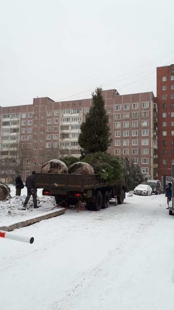 В Приморском районе Санкт Петербурга, прямо среди бела дня воруют елки - откапывают и вывозят на грузовых автомобилях. Местные жители объясняют это тем, что ворованные елки собираются пересадить к церкви на улице Долгоозерная.