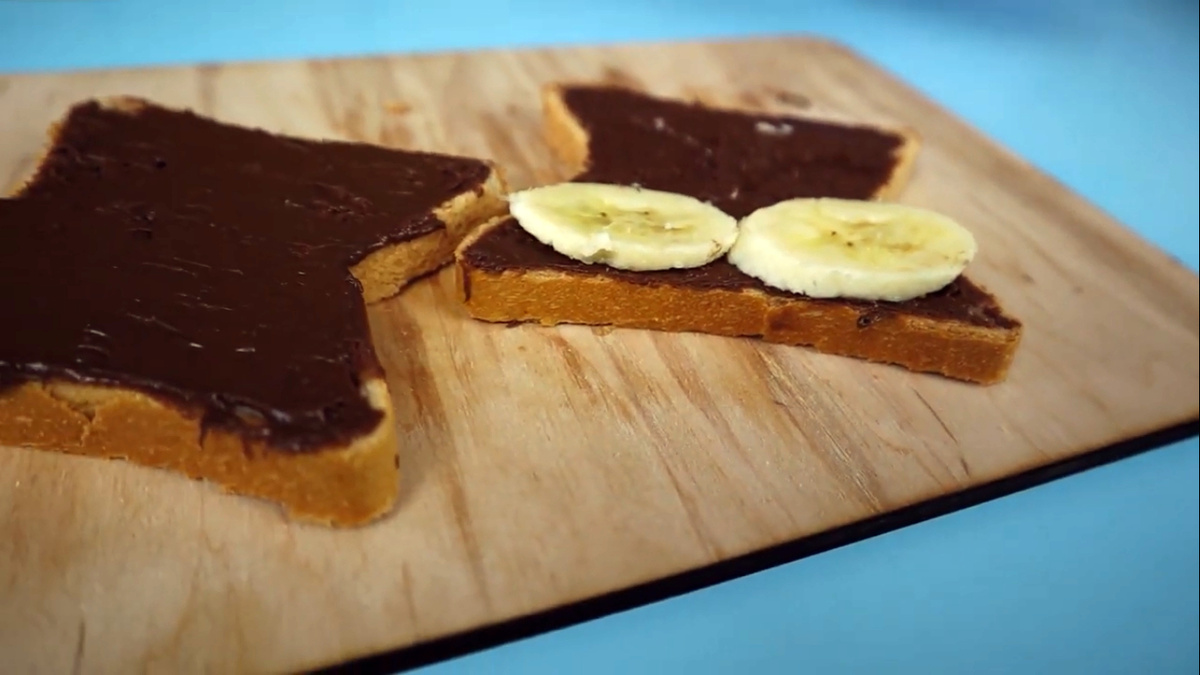 Накрываем сверху тостом. Слегка придавливаем руками.