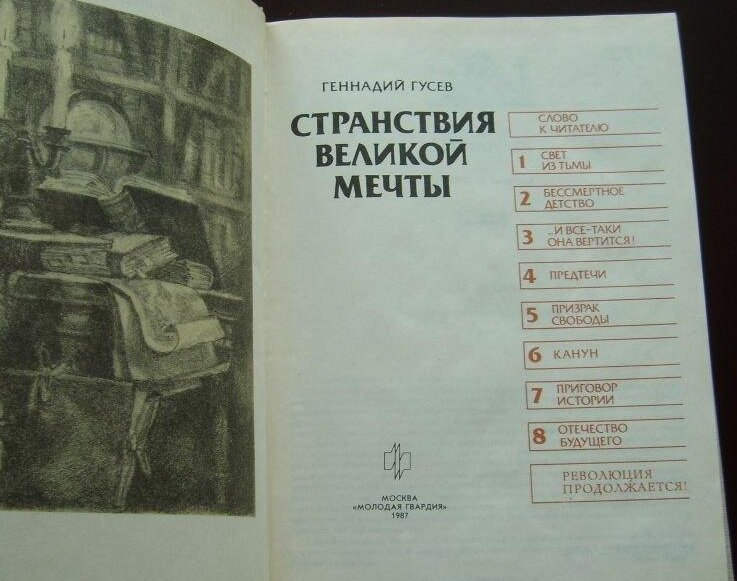 В далёком уже 1987 году в издательстве «Молодая гвардия» вышла книга Геннадия Гусева «Странствия великой мечты». Удивительная книга! И чем больше проходит времени, тем больше я утверждаюсь в этом мнении.