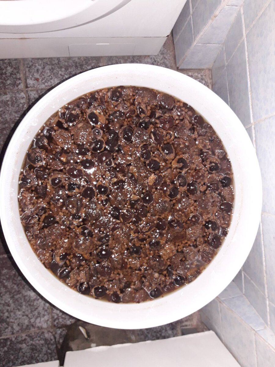 Всё тщательно перемешиваем и ставим под гидрозатвор в теплое место. У меня брага перебродила за 14 дней. Если гидрозатвор дает один-два "булька" в минуту, я уже подготавливаюсь к перегонке. Еще один признак - выпадение в осадок всех твердых частиц варенья, за исключением фруктов, которые просто не тонут (райские яблочки - как в моем случае, сливы и т.п.). Ну а брага должна быть без сладкого привкуса и немного горчить.