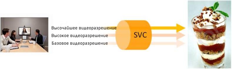 Как и H.264 High Profile, H.264 Scalable Video Coding (SVC) представляет собой еще один пример расширения для базового профиля спецификации H.264 AVC. Хотя это расширение к спецификации H.264 AVC было впервые введено в 2007 году, оно лишь недавно привлекло внимание рынка видеоконференцсвязи.