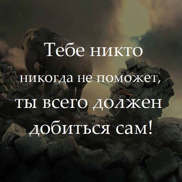 Нужно знать "одно": "Никто,не поможет тебе,кроме себя самого".