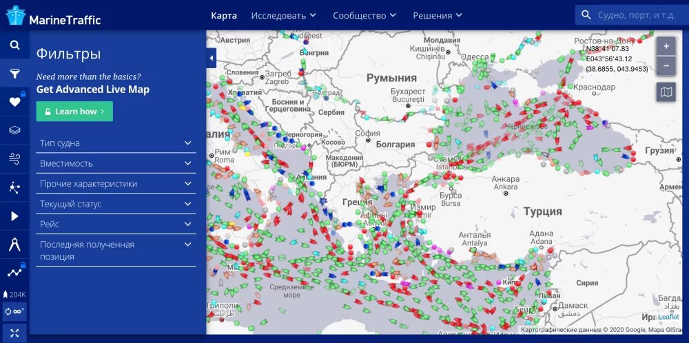 Всё очень просто — вы заходите на сайт Marinetraffic.com, и вот картина перед глазами. В окне поиска суда выбираются по типу, вместимости, статусу, рейсу, стране приписки, другим отдельным характеристикам и c учётом последней текущей позиции. Есть отдельные инструменты, позволяющие узнавать о погодных условиях, оценивать плотность трафика, обозначать траекторию движения, просматривать сведения за предыдущие периоды времени. С помощью опции «слои» на карте можно вывести порты, пристани для яхт, станции, огни и знаки, фотографии, а также другую информацию, доступную по платной подписке: часовые пояса, зоны ECA, координатную сетку и др.