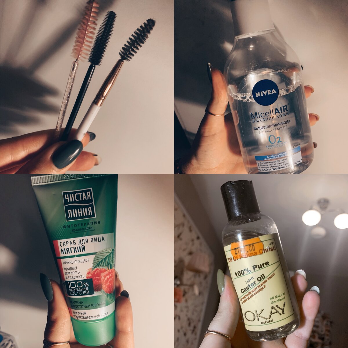 ✔️ Я сначала с помощью ватного диска и мицелярной воды очищаю брови, а затем любым из своих гелей для лица умываю их.