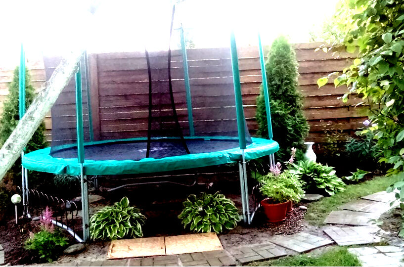 Ну а для меня с появлением батута встал вопрос о том, как вписать его в уже сложившийся дизайн участка.