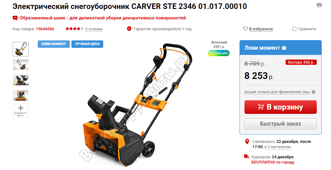 В ожидании снежной зимы мы с женой решили приобрести электрический снегоуборщик. Вот такой: