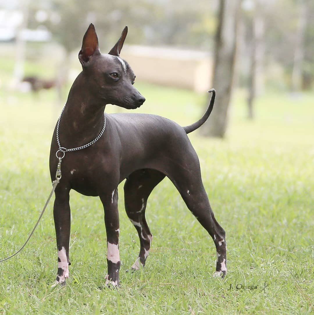 Не всегда ксоло полностью лысые. В одном помёте могут рождаться как полностью голые, так и «одетые» в короткую жёсткую шёрстку щенки. Мне кажется, именно на "одетых" ксоло особенно отчетливо видно, что природа создала этих собак сама.