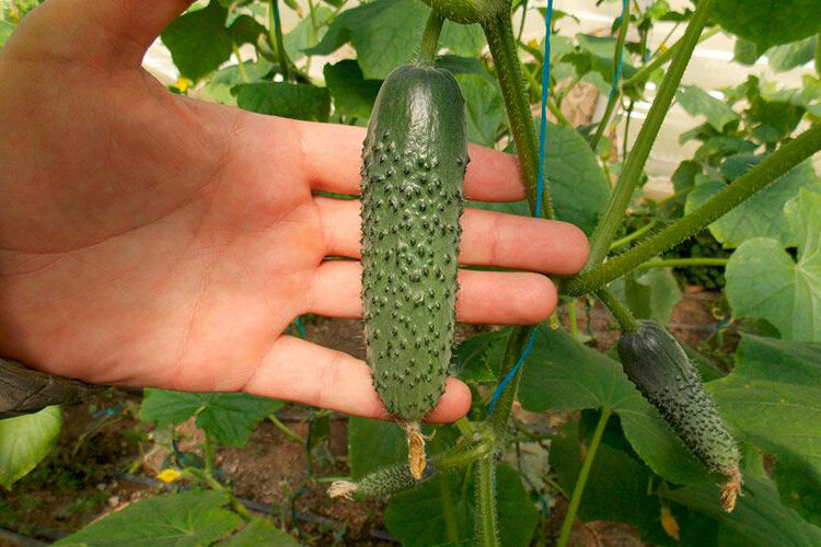 Плоды вырастают достаточно крупными – длиной до 20 см и массой примерно 200 грамм. На их поверхности имеются достаточно крупные бугорки. Огурчики имеют насыщенный зеленый цвет, их кожица тонкая и на вкус ничуть не жесткая.
