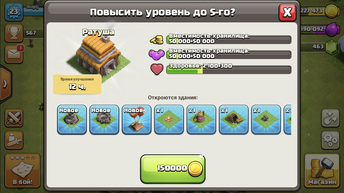 Вот улучшаются последние шахты, осталась малая часть забора, которую можно докачать уже во время улучшения ратуши и мы постепенно начинаем готовится к самому главному - обдумыванию грамотного построения сооружений, прокачки войск и улучшения построек.