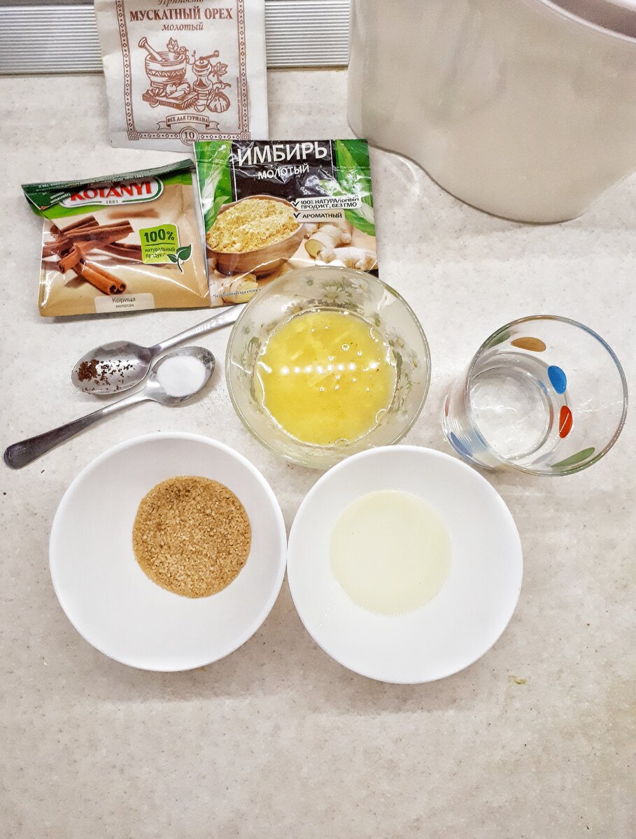 - Специи: 1,5 ч.л корицы, 1/2 ч.л. имбирь, 1/4ч.л гвоздики, 1/4 ч.л мускатного ореха.