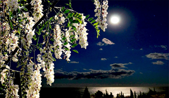 Белоснежные цветы акации были видны даже в темноте.
