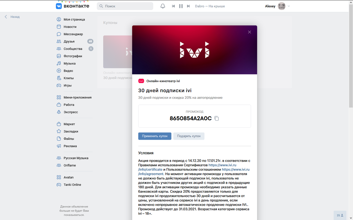 Промокод на ivi
