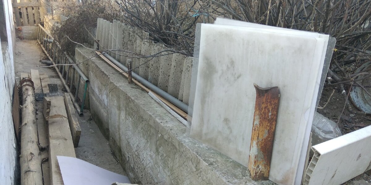 Раньше у нас не было справа этой бетонной стены, что справа на фото выше, там была просто подпорка из арматуры и старого шифера.