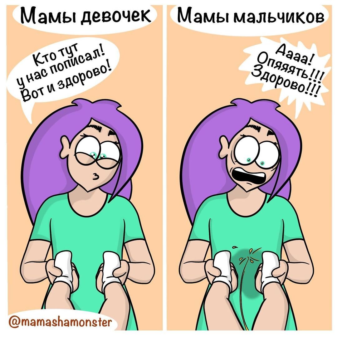 Вот оно! 😅 Самое главное и заметное отличие! Мамы мальчиков, вам уже прилетало? Я как всегда — застилаю сто пеленок, но все равно стрела летит точно в цель. А цель — диван, мама, пол!