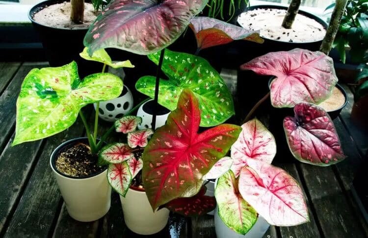Каладиум не может похвастаться роскошными цветками, зато его листья поражают броской красотой. Этот цветок родом из Южной Америки считают одним из самых красивых представителей декоративных лиственных растений. Палитра крупных элегантных листьев