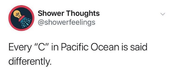 Каждая "c" в словосочетании Pacific Ocean (Тихий океан) звучит по-разному.