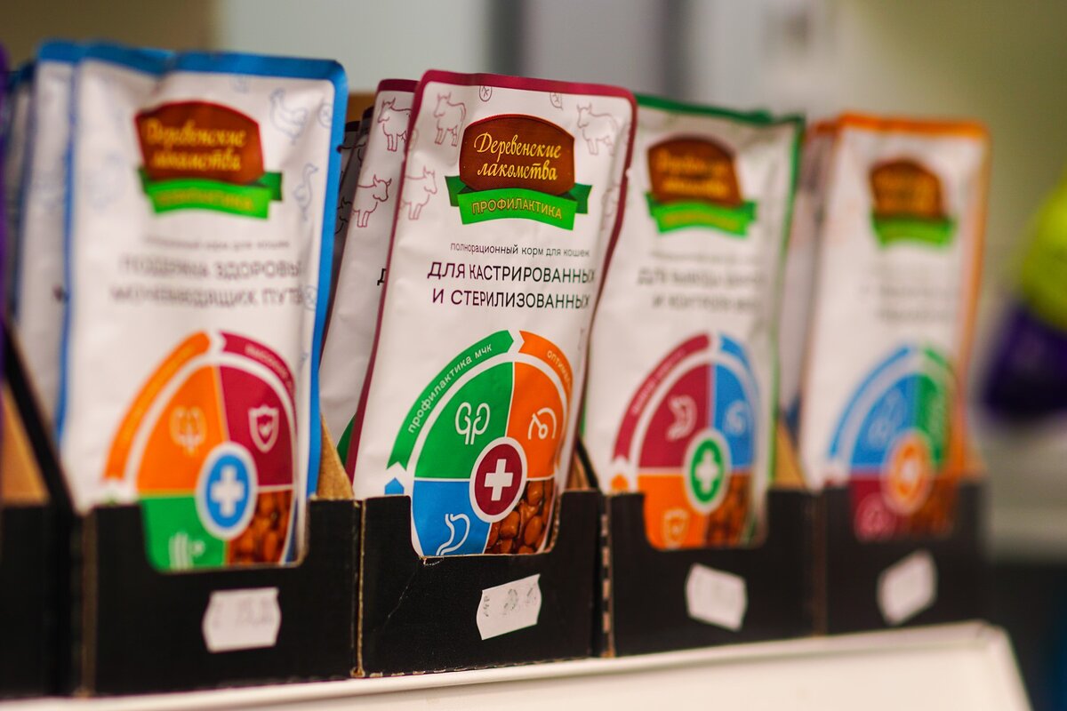Это Зоогурман, и мы продолжаем рассматривать серии влажных мясных и рыбных кормов от компании "Деревенские лакомства".