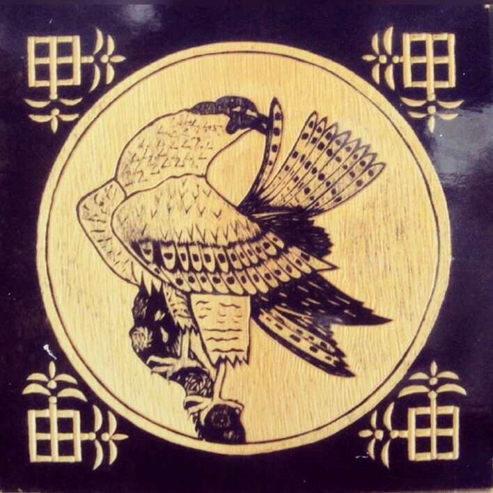 Самой простой является контурная резьба. Она выполняется ножом-косяком, уголком или полукруглой стамеской. Работа производится по чистой древесине или по затонированной различными красителями. В качестве основы можно использовать как фанеру, так и массив древесины.