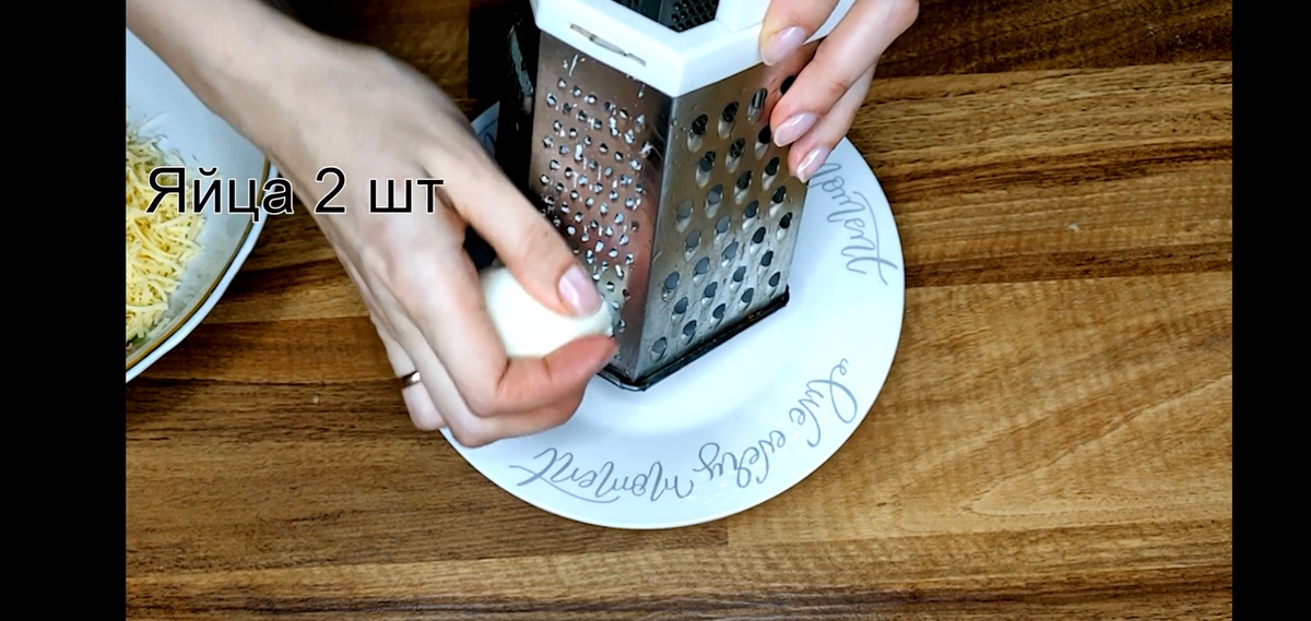 Изначально надо отварить яйца. После остывания чистим и измельчаем на мелкой тёрке. Также измельчаем и сыр.