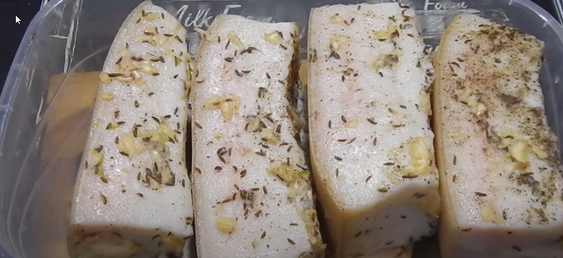 После этого я меняю крышку на плотную полиэтиленовую (классическую), и помещаю в холодильник на три дня. Через три дня готовое сало лучше всего обмыть чистой водой (смыть остатки соли) и обтереть бумажными полотенцами. После этого готовый продукт отправляется в морозилку. Все, сало готово!