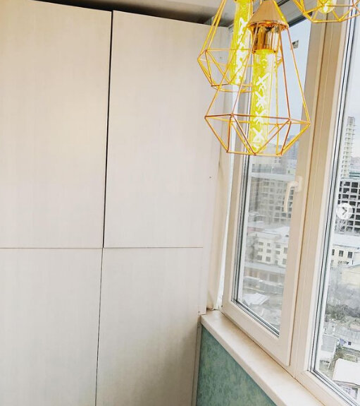 У меня именно балкон, не лоджия. Площадь 4,32 м2. Торцевая «стена» состояла из перил и проф листа, т.е. чисто визуальное ограждение, даже от ветра оно не защищает. На балконе у меня разместился огромный шкаф, большой топчан с местом для хранения и небольшой рабочий стол (на фото стола нет, когда делала фото, он был ещё не готов).