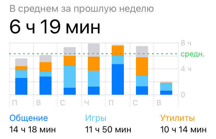 Заглянул и в экранное время за вчерашний день-6 часов 19 минут. Это же почти рабочий день.