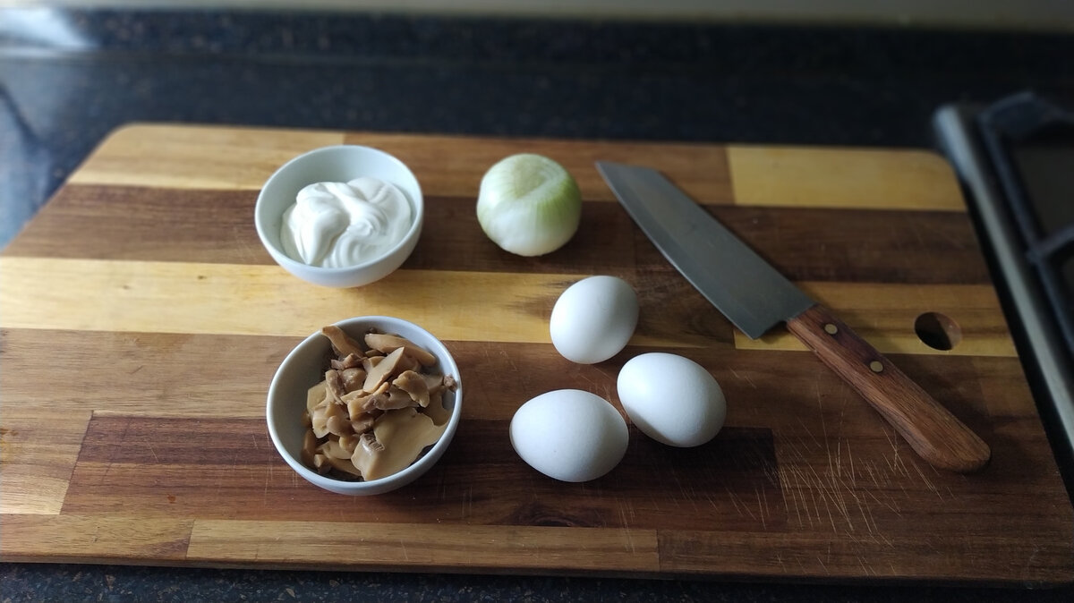 Делюсь оригинальным рецептом из яиц, которым пользуюсь уже давно. Минимум ингредиентов создают интересный букет вкуса. Грибы в этом рецепте можете использовать маринованные или свежие любых сортов.