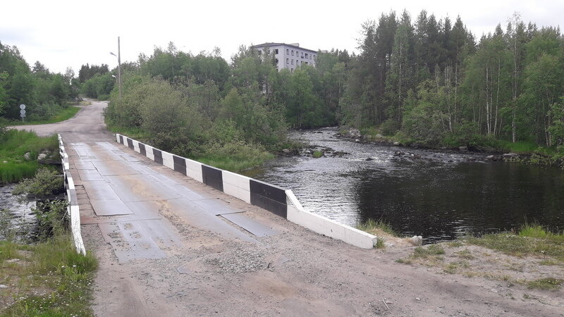 А вот 1-я фотография с видом на поселок. Мост в не очень хорошем состоянии, виден нежилой многоквартирный дом. Река называется Лупче-Савино. Довольно живая речка с бурным потоком и слышно ее издалека. Говорят, что мост требует ремонта, вот только есть сомнения, что найдутся средства на его ремонт.