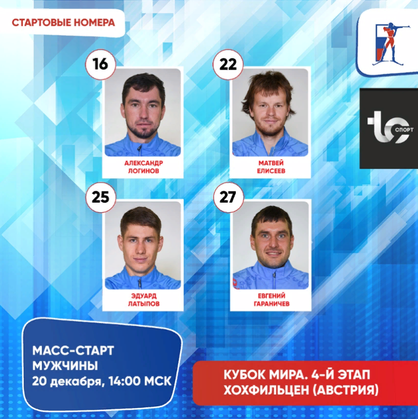 20 декабря на 4 этапе кубка мира в Австрии у мужчин гонка масстарт с 4 огневыми рубежами.