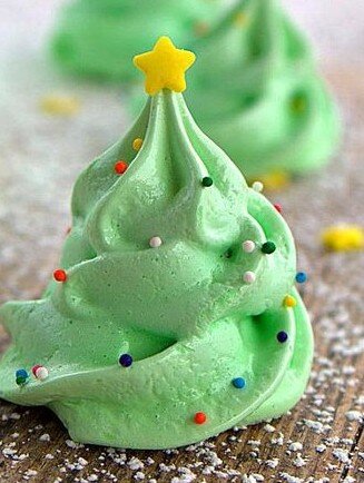 Удивите своих гостей легкими, как воздух, елками из безе. Отличная идея для рождественской вечеринки. Разве они не красивы? Присыпанные сахарной пудрой, они выглядят красиво, как настоящие деревья, присыпанные снегом. Лично мне нравится вкус миндаля, но вы можете использовать все, что захотите. Поделюсь с вами своим рецептом. Это он: