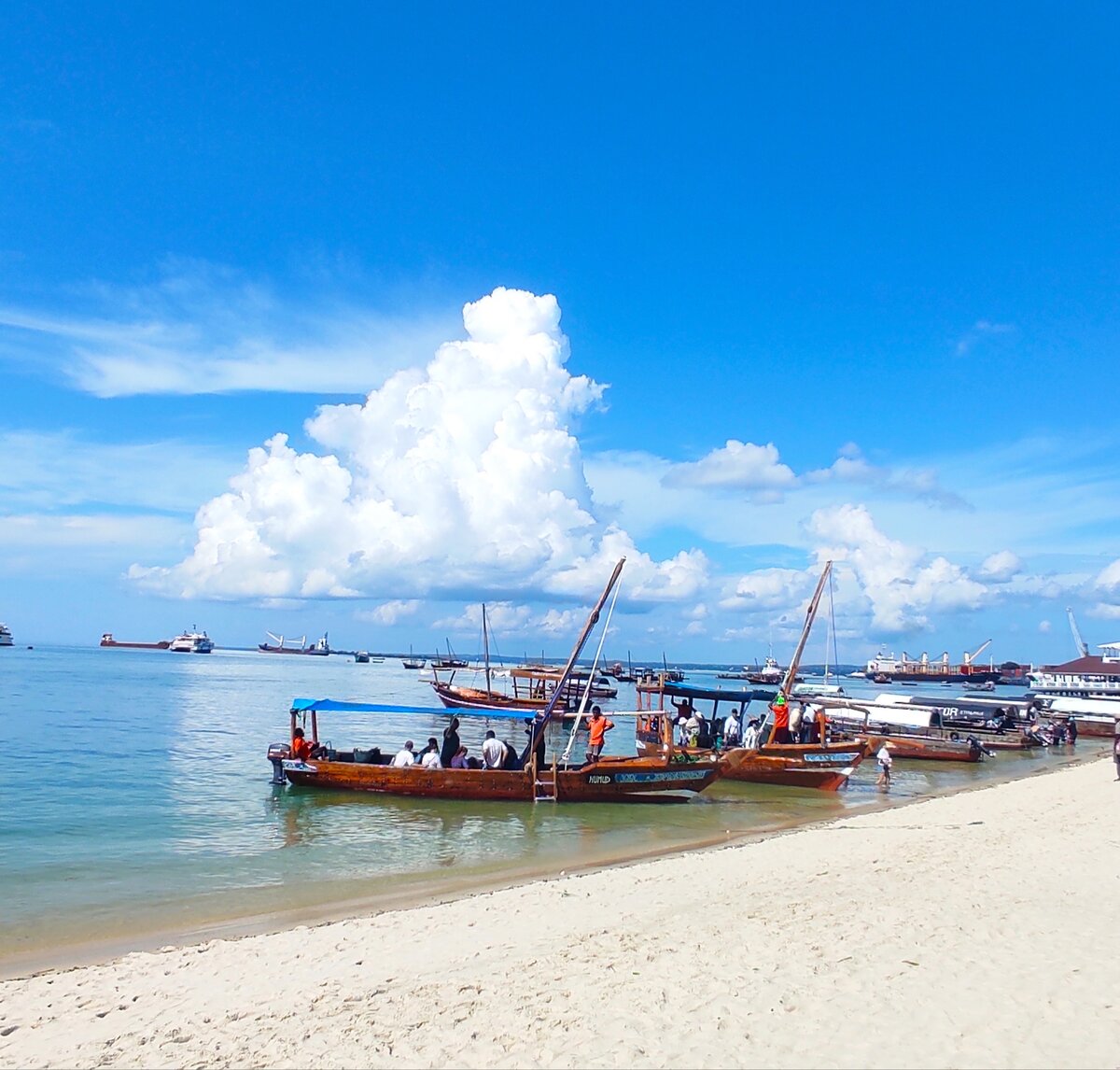 Сам пляж на троечку. Полезной площади метров триста в длину и сто - сто пятьдесят в ширину. Во время отлива конечно больше. Рядом,чуть дальше, порт. И поэтому грязь. Плюс здесь же базируются целая флотилия лодок, которые возят туристов на острова. Отливы минимальные. Купаться можно в любое время. Для Занзибара это большая редкость. Инфраструктура вся под боком. Тоже плюс. Магазины, рестораны все в шаговой доступности, в городе. Пообедать можно и на пляже, в ресторане отеля Tembo. Довольно-таки цивильно, но дороговато. Зато с видом на море. Хотя во второй раз,после остального Занзибара, это уже не казалось морем.