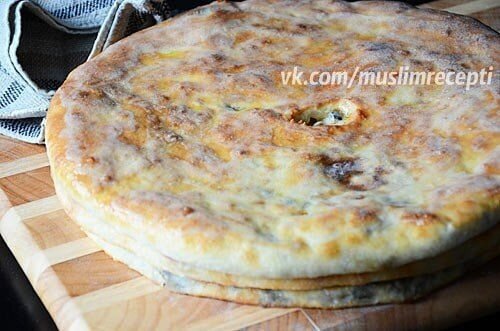 5. Выкладываем в середину начинку (она может быть любой – тонкий слой мясного фарша с луком и пряностями, картошка со свежим сыром, свекольная ботва с зеленью и сыром, а также сладкой) и защипываем над начинкой края теста по типу кулечка. Защипываем аккуратно, но очень тщательно.