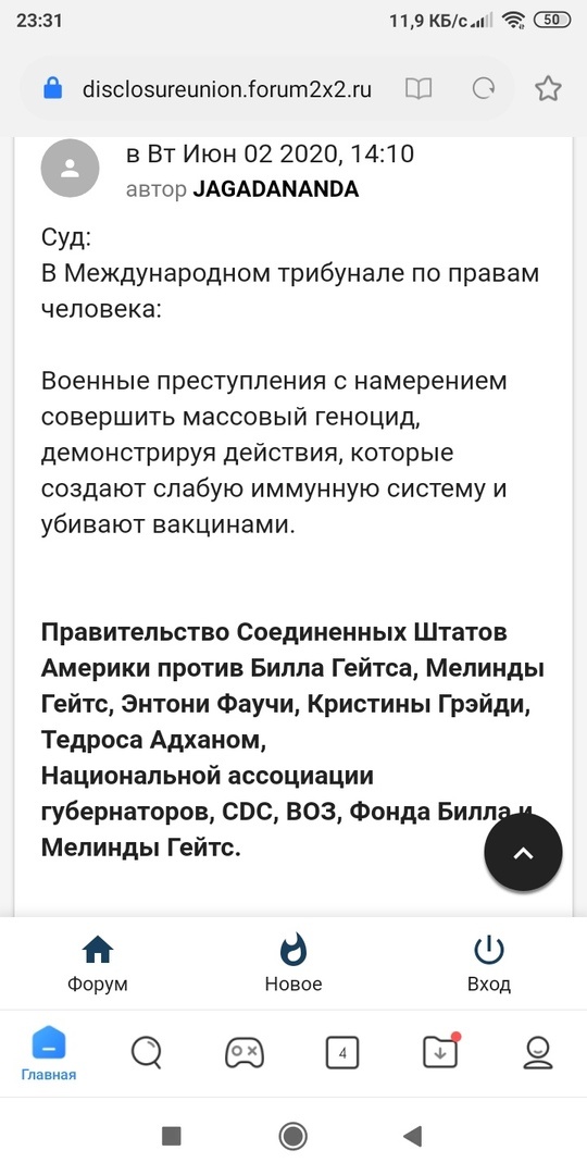 "... План ответчиков состоит в том, чтобы заставить людей сделать прививку от Covid-19, что при ослабленной иммунной системе людей, находящихся в изоляции, приведёт к массовым смертям...." - цитата из сообщения.