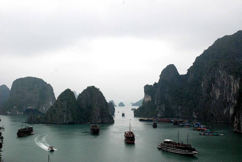 Представьте себе водную гладь площадью около 1500 квадратных километров, из которой, как шипы дракона, выступают 1969 разных по форме и размеру каменных островов. Огромные великаны, поросшие лесом, соседствуют с островками-лилипутами, в прилив уходящими под воду. Уютные заливы с пляжами из мелкого нежного песка противостоят неприступным, уходящим в воду под отрицательным углом ощерившимися иглами каменным стенам. Здесь смешаны радость и горечь, любовь и боль вьетнамского народа. Об островах залива Халонг сложены десятки легенд и историй, нарисованы тысячи картин.
