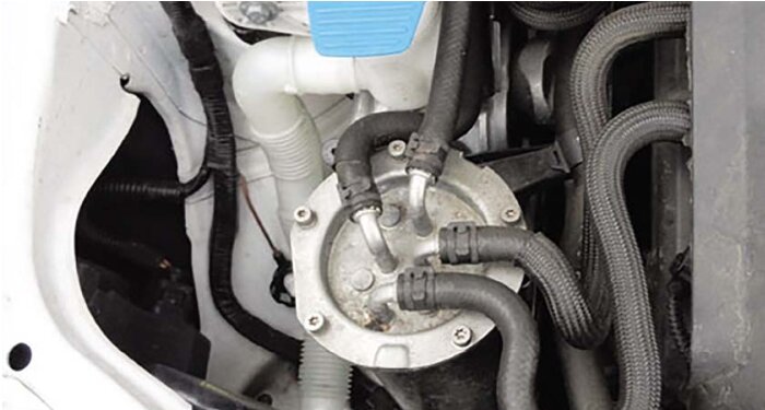 Проблема кроется не столько в целостности корпуса топливного фильтра, сколько в неправильной повторной установке крышки корпуса. Это может привести к несоосности между фильтром крышки корпуса и уплотнительными поверхностями и / или деформации уплотнительного кольца, в результате чего и происходит утечка дизельного топлива.