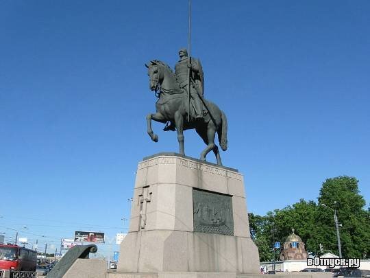 Памятник величайшему русскому полководцу князю Новгородскому, Киевскому и Владимирскому Александру Ярославовичу, прозванному Невским за победу в битве на Неве над шведами в 1240 году, был открыт в Санкт-Петербурге, в день празднования Великой Победы 9 мая 2002 г.