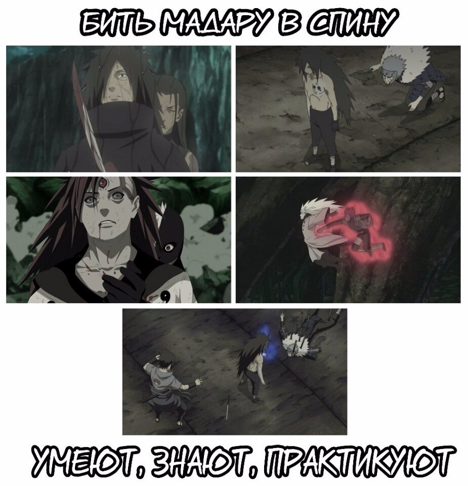 ● Учиха Мадара так добр, что позволяет врагам себя избить, а потом уже дерется сам.