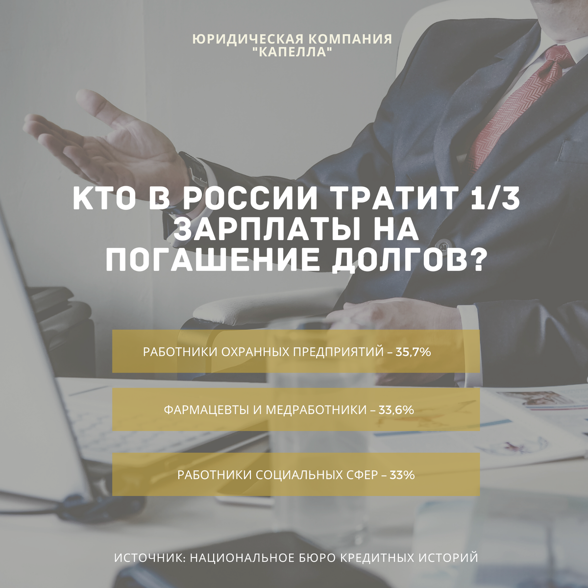 Источник приводит следующие показатели относительно закредитованности граждан по сферам занятости: