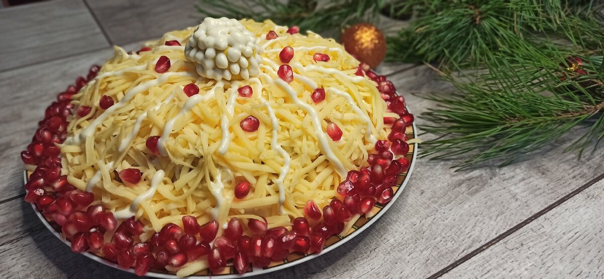 Продолжаем готовиться к Новому 2021 году. Салат обязательно присутствует на праздничном столе у каждого. Я хочу поделиться рецептом очень вкусного и оригинального салата. Этот салат в виде "Новогодней шапки" обязательно украсит Ваш стол и удивит гостей. Готовится он быстро и просто, а главное из самых доступных ингредиентов. Обязательно записывайте или сохраняйте рецепт, что бы не