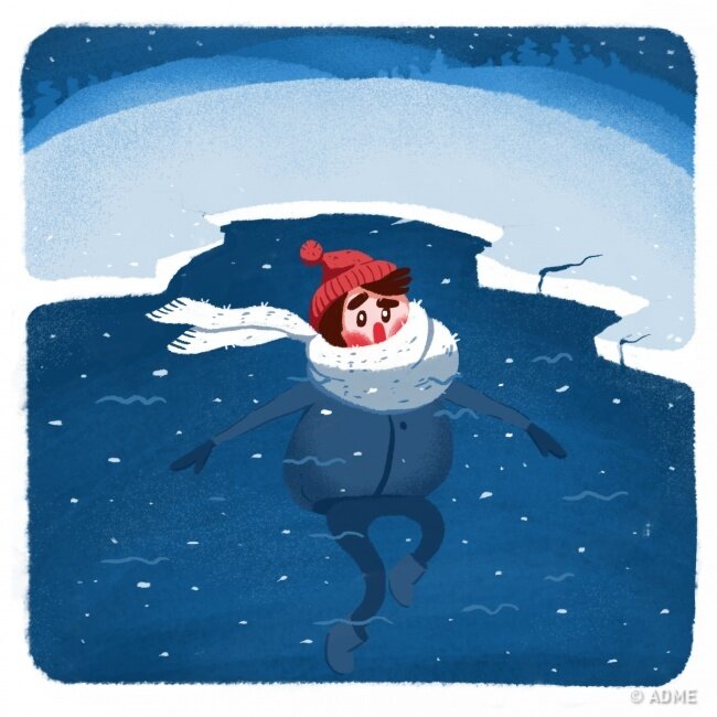 - после этого следует ползти до берега по уже пройденному пути, потому что в других направлениях лед может быть еще более тонким;