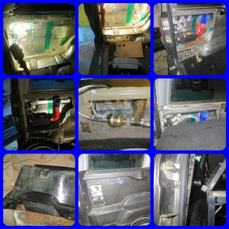 За день установил собственно отопитель, вывел выхлоп наружу, дополнительно за изолировал выхлопную трубу базальтовой лентой на участке её прохождения внутри салона, за